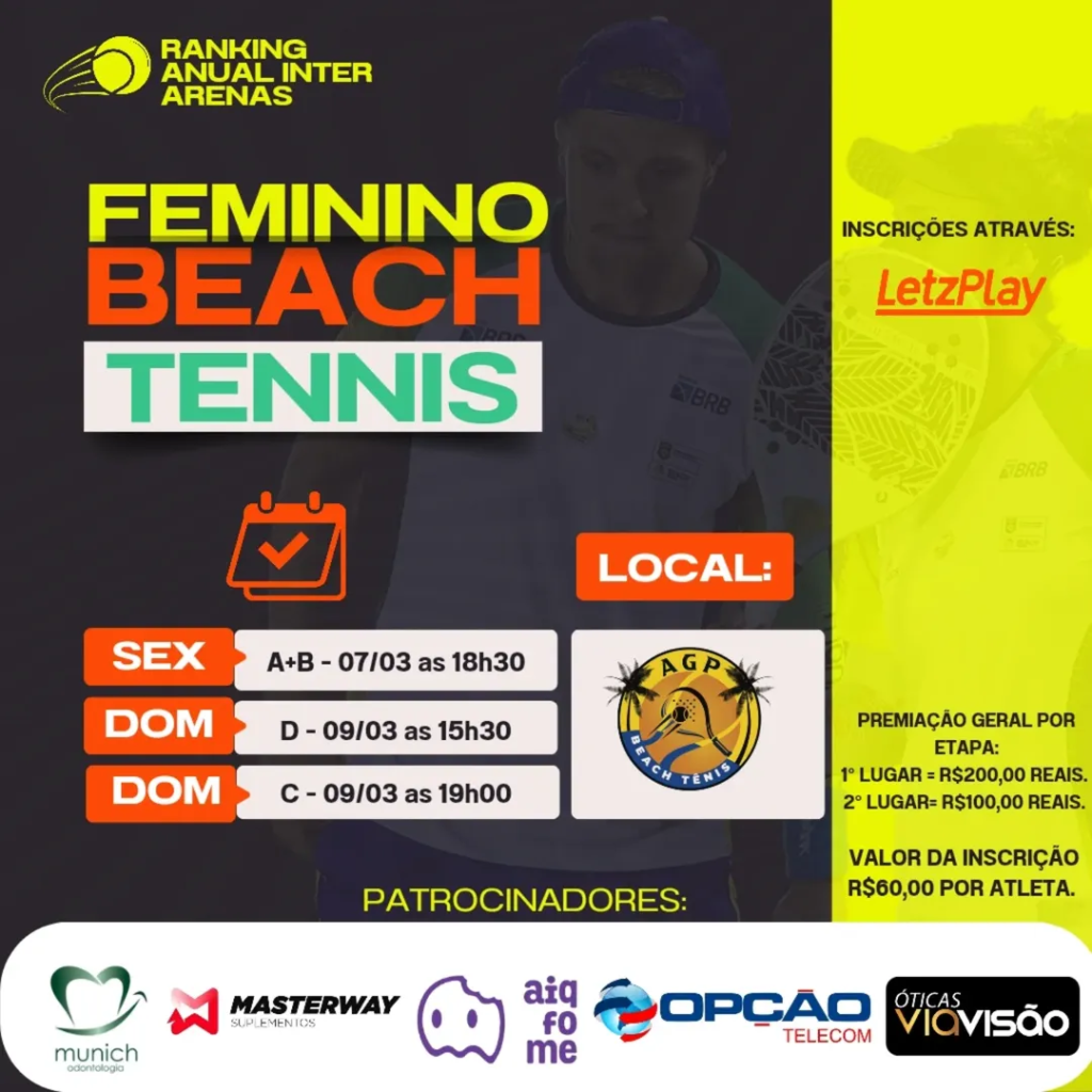 Após o sucesso da primeira etapa, o Ranking Anual Inter Arenas segue com sua segunda etapa, desta vez voltada para o público feminino. As partidas acontecerão na AGP Beach Tennis.